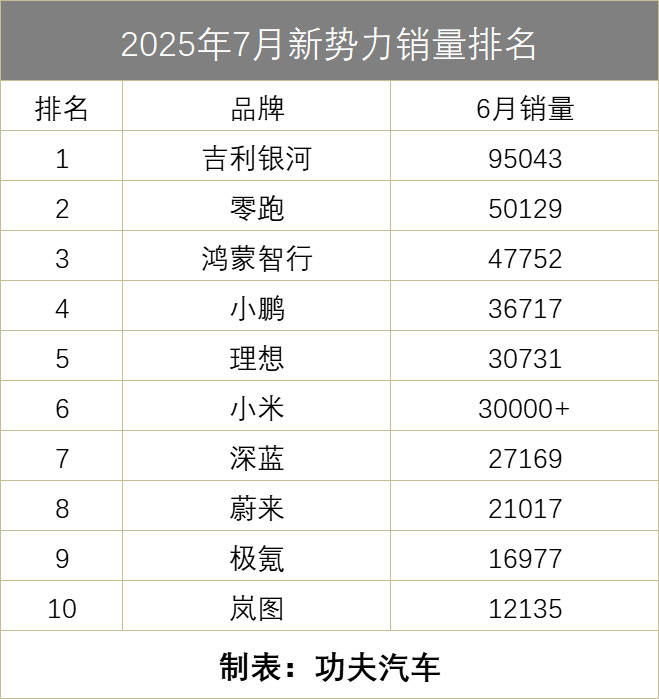 7月新勢力銷量:吉利銀河獨(dú)占鰲頭,華為小米之爭近在咫尺?