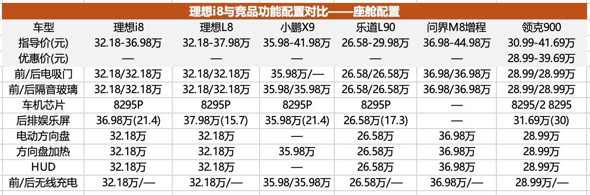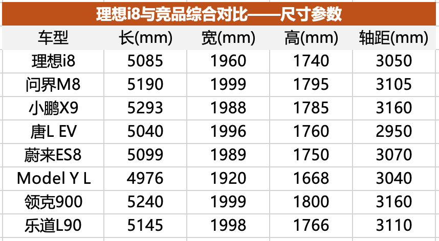 價格方面,i8和L8看齊,但是L8的三排空間是相對局促的,尤其是900、問界M8等更大尺寸的車型上市后,L8在同價位里的空間短板就會更加凸顯。