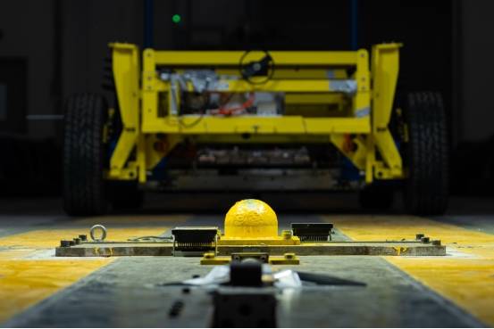 緊接著,臺車刮底挑戰將測試推向高潮。模擬車輛在行駛中電池遭遇底部刮擦的極端情況,臺車以20公里/小時的速度行駛,底部設置直徑達150毫米的球形壁障,電池包底部侵入量高達30毫米。然而,即便在這樣的嚴苛條件下,電池包外殼也僅出現輕微劃痕,無泄漏、起火、爆炸現象,再次證明了其卓越的抗磨損和形變抑制性能。